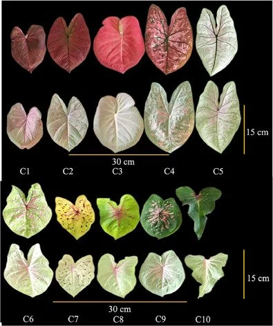 Physiological characteristics of ornamental caladiums through leaf colour diversity
